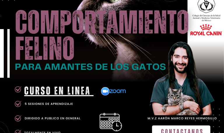 En este curso aprenderás a comprender y manejar el comportamiento felino, identificando las necesidades, emociones y conductas más comunes de los gatos. Obtendrás herramientas prácticas para mejorar su bienestar, prevenir problemas de conducta y fortalecer el vínculo humano-gato, todo a través de sesiones en vivo y avaladas por expertos.